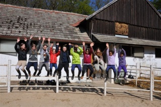 Das Ausmisten hat in den frühen Morgenstunden, als ihr noch geschlafen habt, schon unser freundlicher Stallmeister Fero besorgt, das müssen die Kids bei uns nicht machen. Je nach den Gruppen findet dann die Reitstunde entweder auf dem Longierplatz, dem großen Reitplatz, in der Halle oder mit einem Ausritt statt. In den Wartezeiten könnt ihr euch mit eurem Pflegepferd beschäftigen oder einfach nur zuschauen - denn auch von den Fehlern der Anderen kann man viel lernen.